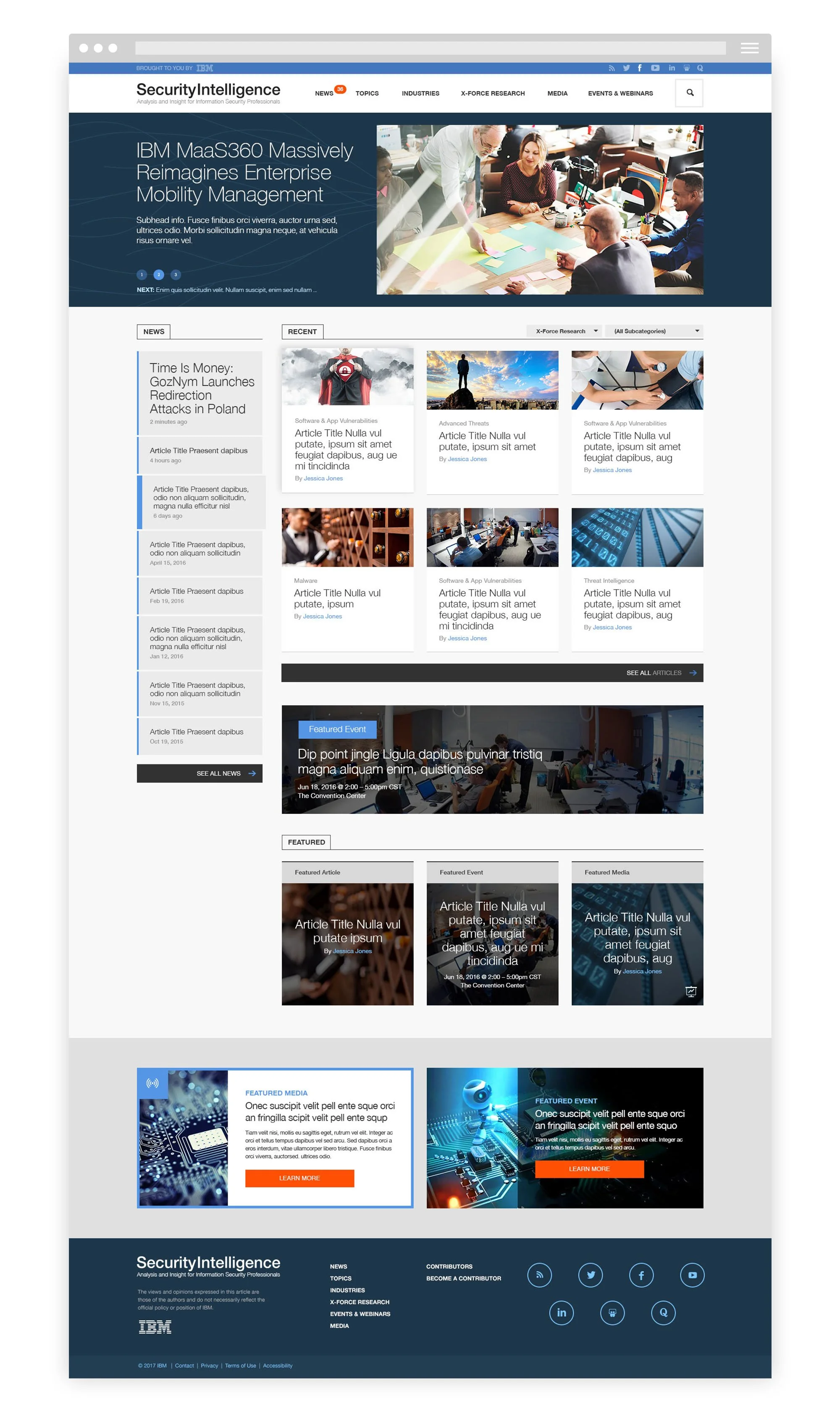 As part of IBM’s effort to modernize the Security Intelligence platform—a global content hub for cybersecurity professionals—my team and I were tasked with refreshing the site to drive engagement and improve the user experience.